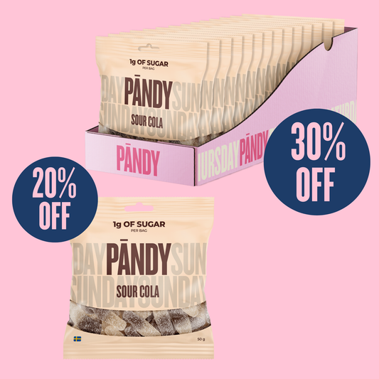 SALE SALECandy Sour Cola4.32 / 5.0 (50) 50 total reviews Regular price From 16.00 SEKRegular priceUnit price / per20.00 SEKSale price From 16.00 SEKSALE