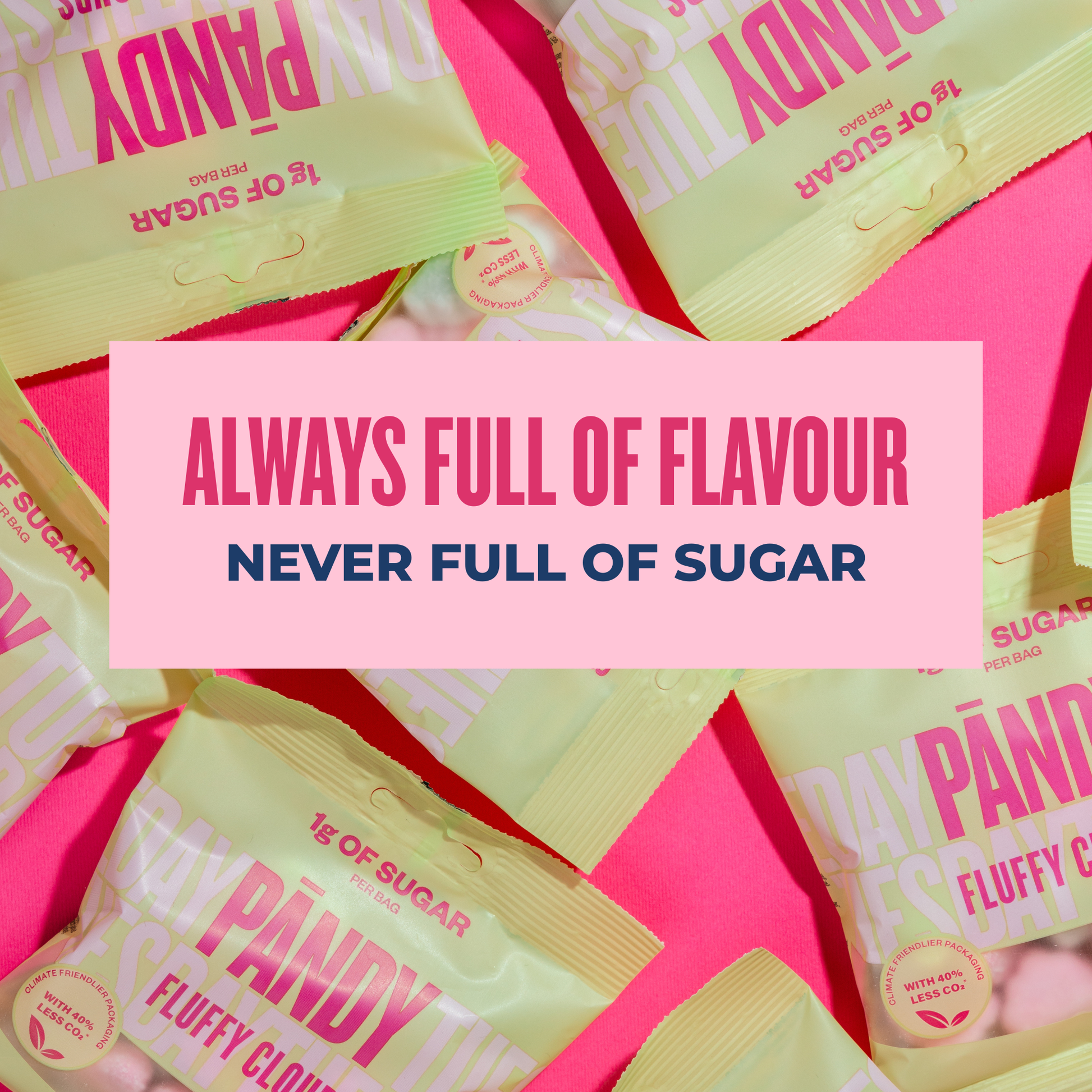 Foam candy with no added sugars, wild strawberry and green apple flavour. With sweeteners.
