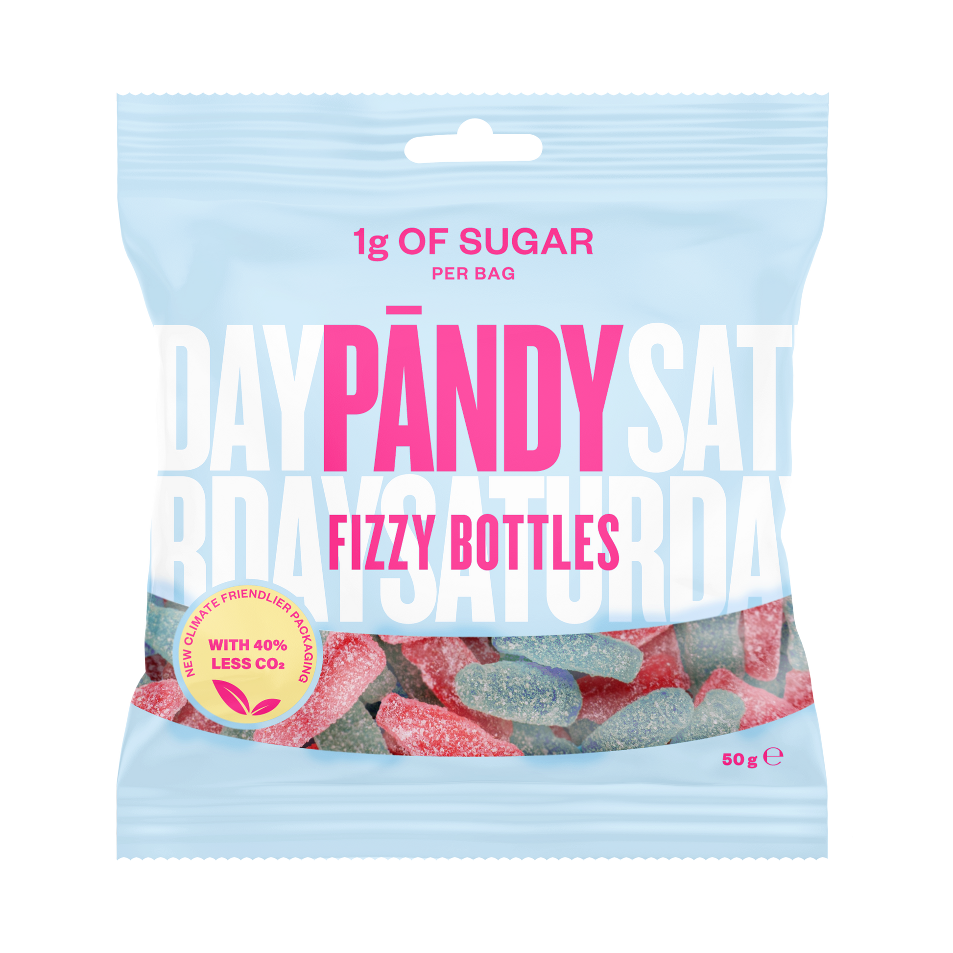 En mix av rosa och blå geléflaskor med en syrlig bubbelgumsmak. Nu med nytt recept och en mer miljövänlig påse!