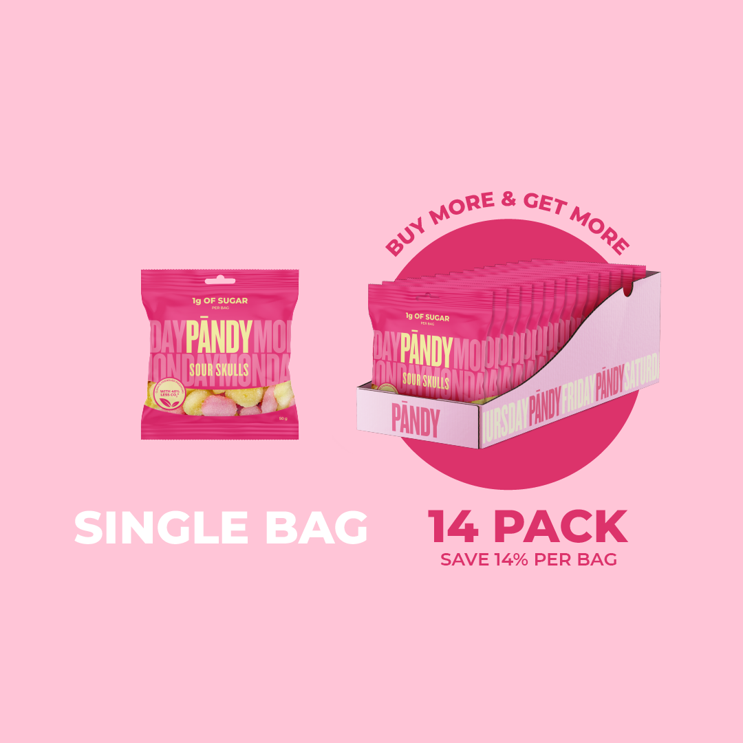 VÄLKOMNA PÄNDY SOUR SKULLS! Vårt senaste tillskott i skumgodisfamiljen bjuder på den perfekta balansen mellan sött och surt!